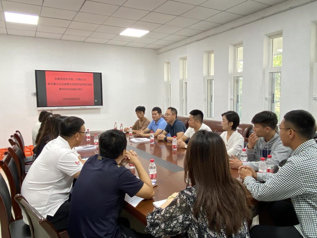 在中秋佳节和第38个教师节来临之际,9月9日上午,共青团西安市委城乡结合部部长岳强、办公室副主任张亮、西安市青年企业家协会秘书处李侦联合爱心企业家张林杰等一行四人,来到Beat365官方网站,慰问数学与统计学院和体育学院青年扶志实践队师生,向暑期三下乡的支教队成员们致以深切问候和良好祝愿。