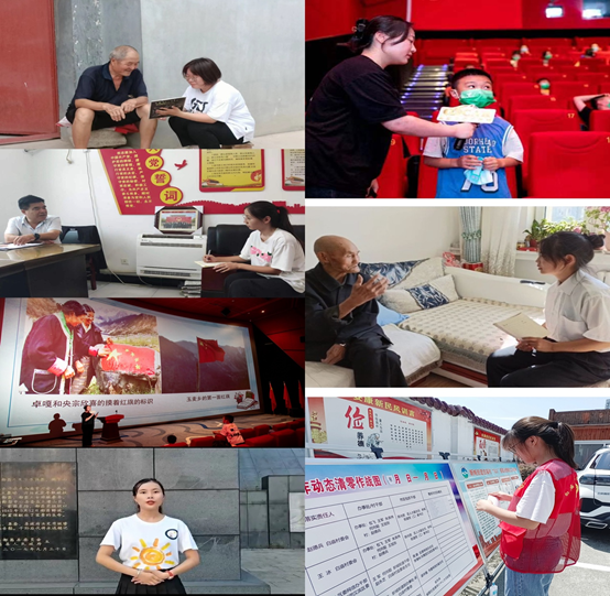 在坚持做好常态化疫情防控基础上,实践团成员以“共走初心之旅,传承红色基因”为主题,足迹遍布新疆伊犁州、西安、延安、新余、郑州、辽阳多地,寻访了郑州二七纪念塔、九一八事变策划地纪念馆、延安革命纪念馆、杨虎城纪念馆等多处红色教育基地。观看馆藏的实物、影响及文字介绍,重温入党誓词,近距离学习革命先烈艰苦奋斗史,近距离感悟革命精神。寻访过程中,实践团成员因地开展主题微宣讲。一次次小小的宣讲,让党史故事更加入耳、入脑、入心。与此同时,实践团部分成员深入走访家乡优秀老党员,面对面聆听党员模范讲述“红色记忆”,零距离感悟老党员的“红色初心”。采访对象包含新疆伊犁昭苏县七十四团抗美援朝老兵陈天佐同志、陕西省安康市平利县松鸭乡原妇联主任朱德芳同志、甘肃省武威市退伍军人仲意善同志、陕西省周至县脱贫攻坚产业驻村干部齐平同志等优秀老党员。实践团成员在采访完抗美援朝老兵陈天佐同志后分享道:“在陈爷爷声情并茂的讲述中,我了解了更多发生在当地的革命故事。也更加生动地体会到了中国共产党一路走来的艰辛,这更加坚定我为实现中华民族伟大复兴而不懈奋斗的理想信念。”在走访红色基地和寻访老党员基础上,实践团成员也将所感、所悟融入志愿服务行动,自觉投身村、社区服务和疫情防控一线,承担如协助乡村医生服务农村患者、在社区开展支教活动、参与社区疫情防控等工作。