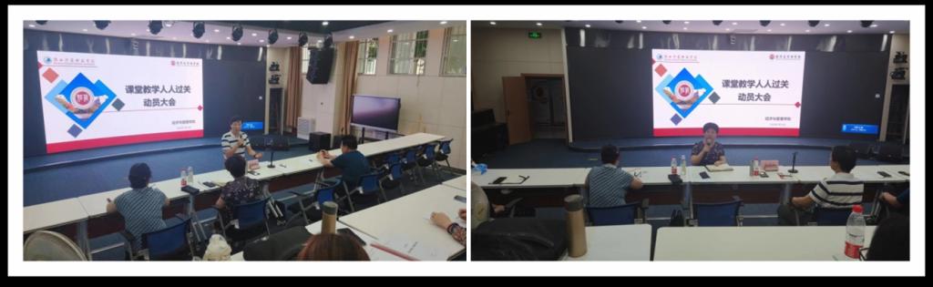 为进一步提升教师的课堂教学能力,根据学校“关于开展‘课堂教学人人过关’活动的通知”(陕师院评建办函〔2022〕6 号)要求,2022年7月14日、8月17日,经济与管理学院开展全员磨课。陕西师范大学教育学部教授、博士生导师陈晓端、西安交通大学副教授吴润莅临指导我院教师磨课活动,经济管理学院院长崔洁、党委书记张建辉、副院长陈秀端、副院长刘家瑛、党委副书记陈璐以及经济与管理学院全体教师现场观摩,本轮次磨课活动由副院长陈秀端主持。