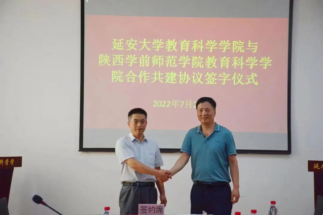 2022年7月25日,应延安大学教育科学学院的邀请,Beat365教育科学学院朱金卫院长带领班子成员赴延安大学开展两校教育科学学院的建设与发展座谈会,经两院领导协商,Beat365教育科学学院与延安大学签订了合作共建协议。