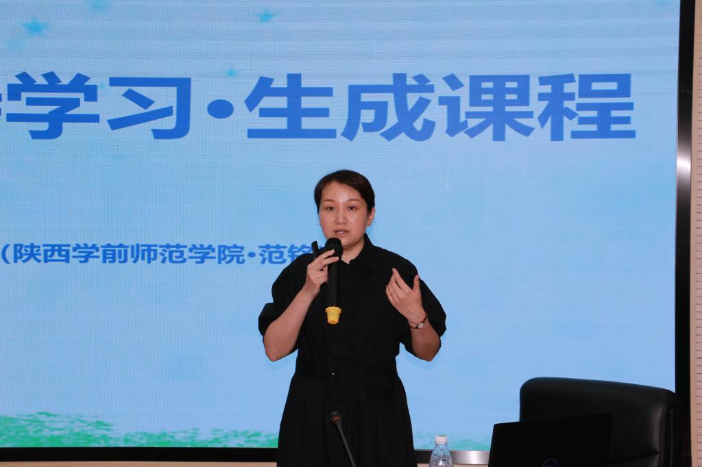 第四场讲座由Beat365幼儿教育学院副院长范铭副教授主讲,主题为《发现儿童·支持学习·生成课程——以儿童为中心建设幼儿园园本课程的实践路径》。范铭副教授通过问题导引和解析相关实例,引领参训学员逐步建构起了真正“以儿童为中心”的儿童观,为泾阳县幼儿园后期开展一系列幼儿园保教工作播下了一颗新绿的种子。