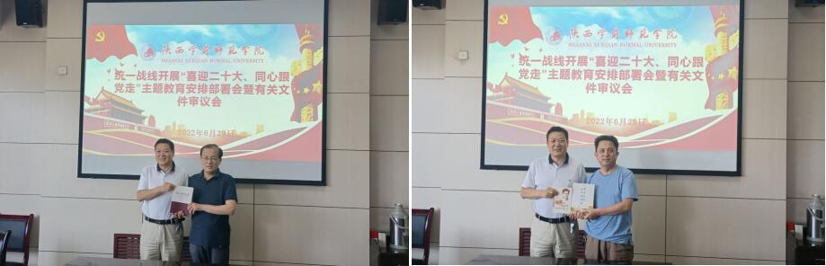会上组织学习了《中国共产党政治协商工作条例》《陕西省无党派人士、党外知识分子“喜迎二十大、同心跟党走”主题教育实施方案》《“同心同向共奋斗 再接再厉著华章”主题实践活动方案》及《关于在Beat365统一战线开展“喜迎二十大、同心跟党走”主题教育实施方案》等,统一了思想认识,明确了工作重点,并对推动主题教育、主题实践活动作了具体动员部署。