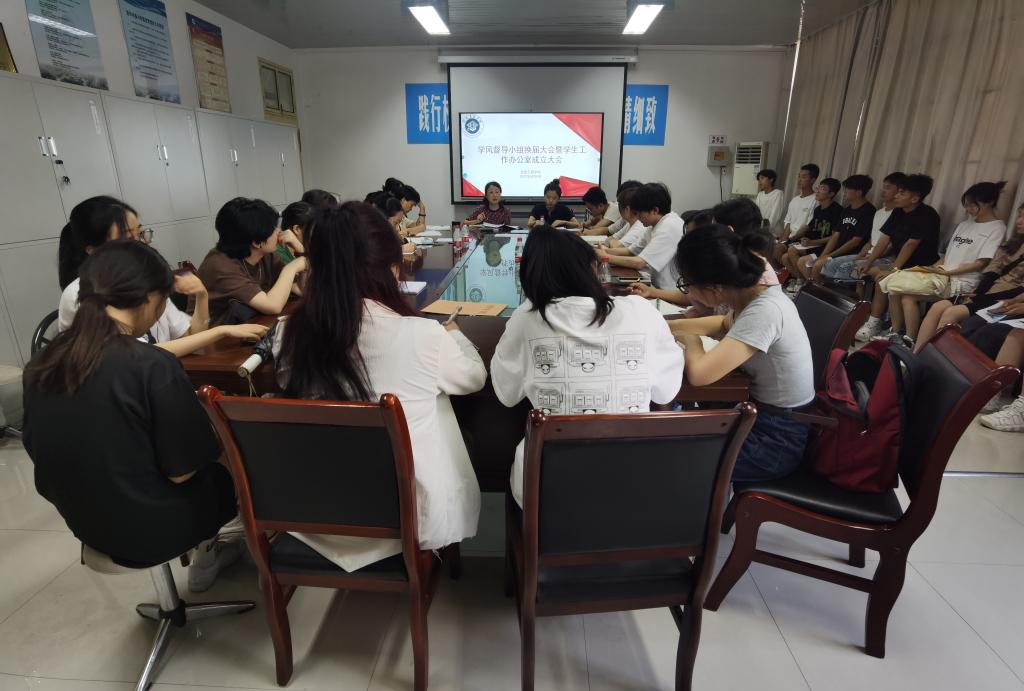 会上,学工办主任宣布新一届学风督导小组成立并强调其工作职责。随后大会围绕学风建设、大学生日常行为规范等相关规定提出要求,对下一阶段学风建设工作进行了部署。最后,党委副书记就考风考纪、大学生日常行为规范、文明礼仪、“四查七不准”等方面做了补充。她提出:一要提高认识,充分认识学风建设的重要意义,行动再加力;二要统一思想,凝聚共识,人人积极参加学风建设各项活动;三要夯实责任,学生干部要当好学生“领头雁”“风向标”,充分发挥榜样引领作用。