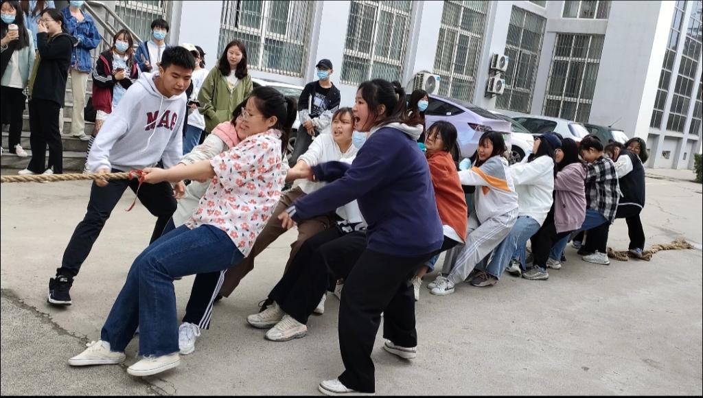 2022年5月10日-5月13日下午6点,拔河比赛如期在启真楼、毓秀楼门前举行。参赛队员个个精神抖擞、斗志昂扬,全力以赴。场外的拉拉队情绪激扬,积极热情为参赛队员加油呐喊,比赛场面既热烈又温馨。比赛也牵动了老师的心,老师与学生会成员之间展开了一场激烈的角逐,双方互不示弱,竞争激烈,平时温文尔雅的老师也是卯足了劲,奋力拼搏,比赛场上洋溢着欢乐的笑声与加油助威声。