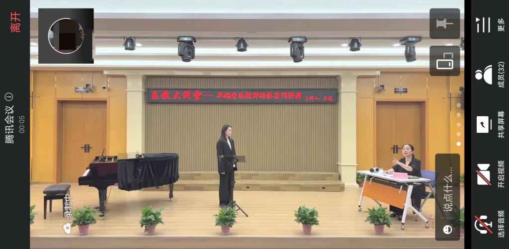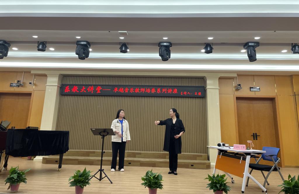 为认真落实习近平总书记关于学校美育工作的重要论述,深入推进美育工作,不断提升教育教学质量,音乐学院紧扣卓越音乐教师培养目标,开设“乐教大讲堂-卓越音乐教师培养系列讲座”,并于2022年4月28日晚上邀请陕西省莲湖教师进修学校音乐教研员、陕西省基础教育教学美育专业指导委员会副秘书长王熳老师进行《音乐课堂教学能力训练》的专题讲座。音乐学院刘毅力院长、贺凌云副院长以及部分教师和学生聆听了讲座,同时,讲座通过腾讯会议的形式进行网络直播,在保证防疫工作顺利进行的情况下,最大限度地为同学们提供了优质的学术资源。