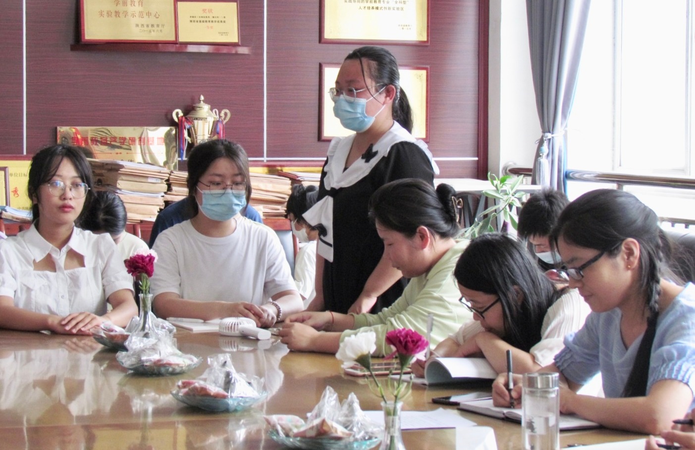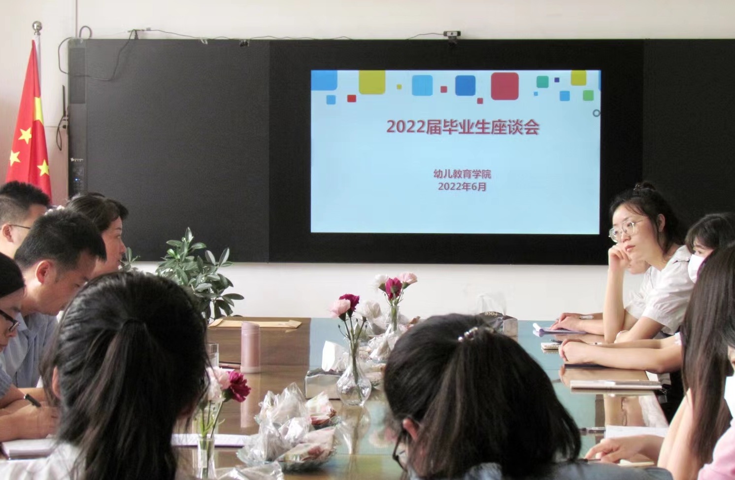 2022年6月2日下午即端午节来临前夕,幼儿教育学院在启真楼307会议室召开2022届毕业生座谈会暨端午节少数民族、省外学生座谈会。幼儿教育学院党委副书记(主持)王继康、副书记苏群、教学副院长范铭、各年级辅导员、毕业生代表及少数民族、省外学生代表参加座谈会。会议由学院党委副书记苏群主持。