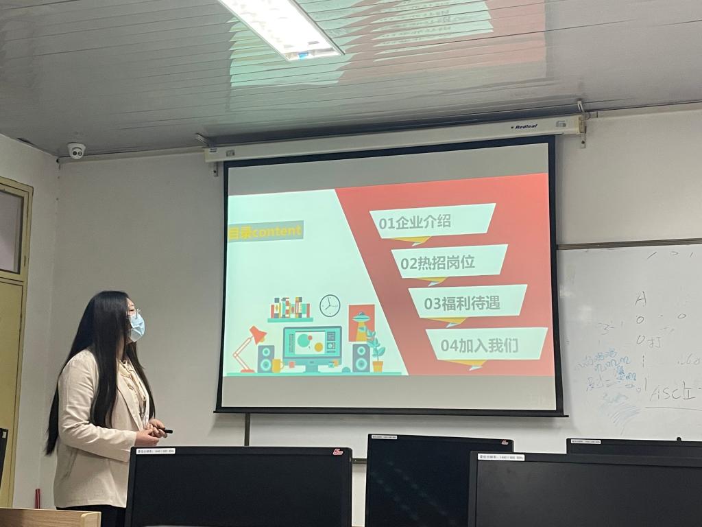 宣讲会上,用人单位负责人首先向毕业生们详细介绍了该企业所在行业背景,并对本企业主营业务、核心优势和公司发展规划进行了逐一介绍,就毕业生们关心的招聘岗位、福利待遇和招聘流程等问题也进行了详细说明。最后,企业负责人还针对有意向的毕业生进行了现场笔试和面试。