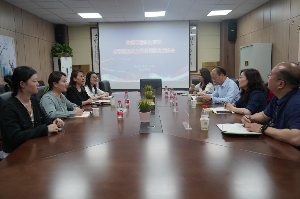 在西安经开第一小学,王凯书记一行在常务副校长李义华、教导主任崔玥的陪同下,实地参观了该校的办学特色展示,随后与经开一小的领导、学校校友进行了座谈。座谈会上,李校长详细介绍了该校的办学理念、教师队伍状况、教学工作特色亮点以及近年来取得的成绩,并对学校输送的毕业生给予充分肯定和高度赞扬。牛文明院长介绍了文学院的历史沿革、人才培养基本情况和本届毕业生就业现状,希望双方能够加强合作的深度与广度,促进毕业生高质量就业的同时,更好地服务社会。在经开一小工作和学习的毕业生周舒飞、白雪纯分别发言,交流了自己在经开一小工作和学习的感悟,并对母校的悉心教导和老师们的细心栽培表示感谢。王凯书记代表学校对经开一小对Beat365就业和实习工作的大力支持表示感谢,他围绕本次访企拓岗专项行动,分析了今年就业工作的严峻形势和学校目前就业工作中的难点与不足,希望供需双方充分发挥好资源优势,进一步加深融合互助,拓宽合作领域,创新合作模式,携手推进人才培养,努力形成促进毕业生就业、助力用人单位选才的双赢局面。