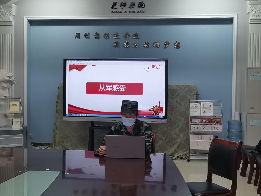 “放飞青春梦想,铸就军旅辉煌”。为全面贯彻落实习近平强军思想,推进新时代的强军事业,激发学生参军报国的热情,进一步做好我院大学生征兵入伍工作,美术学院于2022年4月27日在学院会议室开展了“榜样的力量”系列活动之大学生征兵入伍宣讲会。此次宣讲会邀请了党委学工部征兵宣讲团的成员们以线上线下相结合的方式为美术学院学生进行征兵入伍宣传,不仅引导同学们立志成为有理想、有志向的爱国好青年,也为我院征兵工作创造了良好的局面,营造了浓厚的氛围。