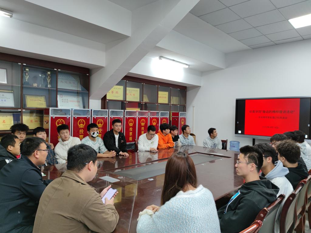 2022年4月14日上午10点在体育学院会议室举办首场“身边的榜样”宣讲会暨余成燕同学赴国少队欢送会,体育学院党委副书记李强、辅导员、2018级和2019级运动康复专业部分同学参加了会议,会议由兼职辅导员覃华生老师主持。