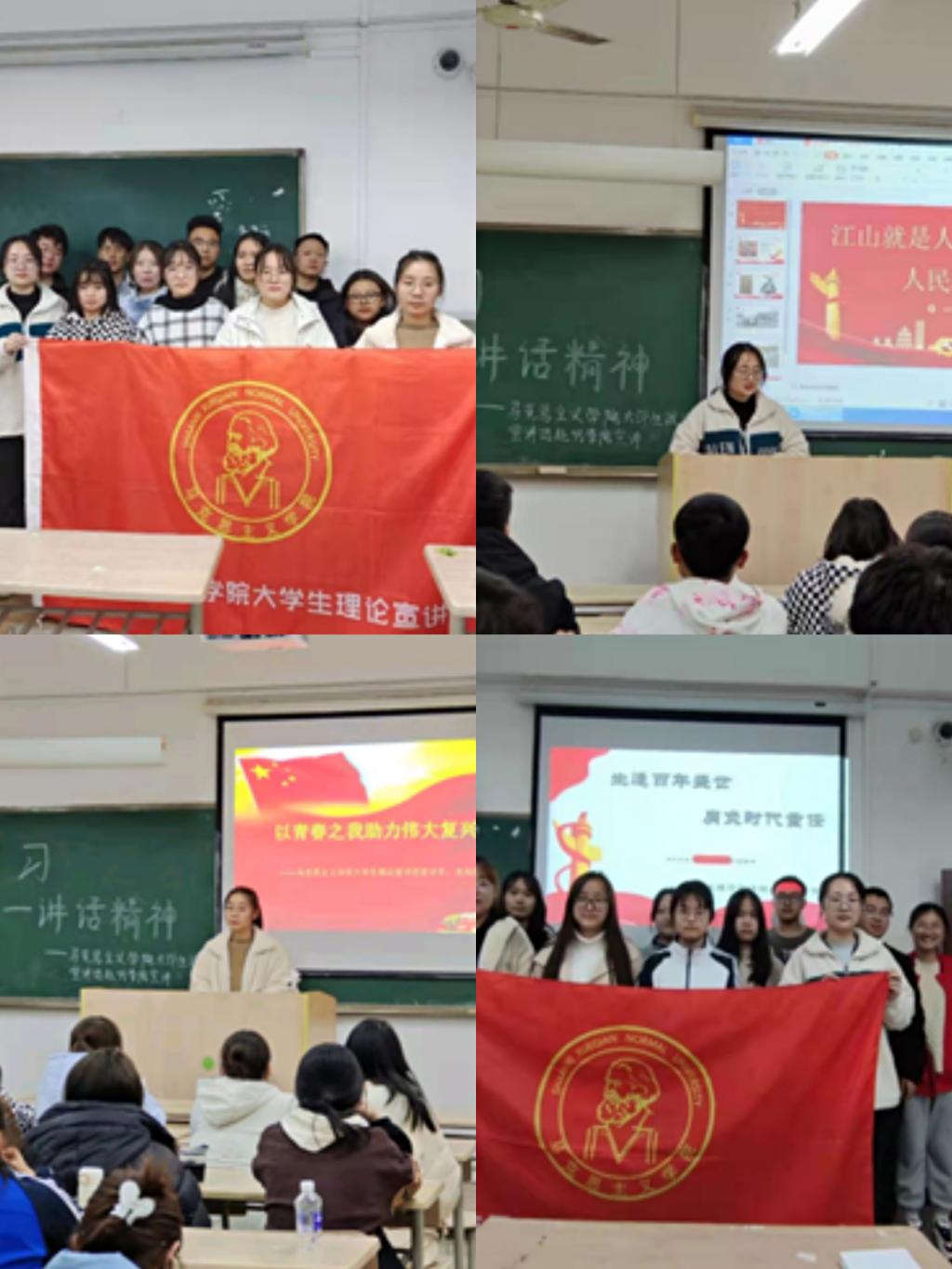 2021年秋季学期以来,马克思主义学院大学生理论宣讲团围绕党的百年历史、“七一”重要讲话精神、十九届六中全会精神持续开展交流研讨会、专题学习和集体备课会。采取主动对接、入院进班的方式,分组实施、深入推进,常态化开展对象化、分众化、互动化的宣讲。2021年秋季学期共开展校内宣讲活动14场,形成宣讲主题课单28讲,覆盖经济与管理学院、教育教科学院、外国语学院、化学化工学院、信息工程学院、数学与统计学院等六个二级学院,覆盖听众570余名。