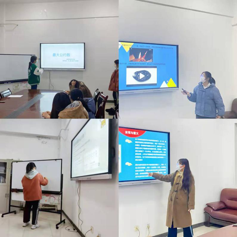 每组汇报结束后,王锦瑞老师均进行了深入的指导点评与补充完善,鼓励同学们积极接受新的数学理论与数学知识,引导同学们大胆猜想、勇于打破常规,同时,充分肯定同学们在主题汇报中的专业素养和积极态度。比如在最大公约数小组的点评中,将古希腊欧几里得除法与我国古代《九章算术》中的更相减损法联系在一起,并以此讨论如何计算两个多位数的最大公约数。