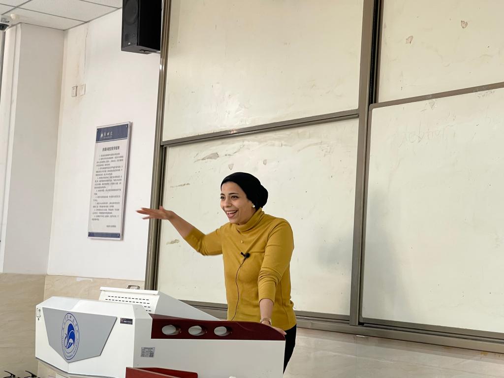 埃及籍博士生艾小英(Mehad Mousa)分享了自己的学习和研究经历,她说道,回溯过去几百年来的历史,可以看到历史上中东和中国通过丝绸之路有着紧密的联系。时至今日,当代的“一带一路”焕发出了旺盛的生命力,为文化交流做出了卓越的贡献。她表示在中国的学习让她更深刻地体验到了中国文化宝藏,加深了对中华文明的理解。同时也坚定信心,做中国与中东文化交流的桥梁。她还鼓励翻译专业学生,翻译工作是有重要意义的文化传播途径,年轻人有责任通过翻译和跨文化研究加深互相了解。