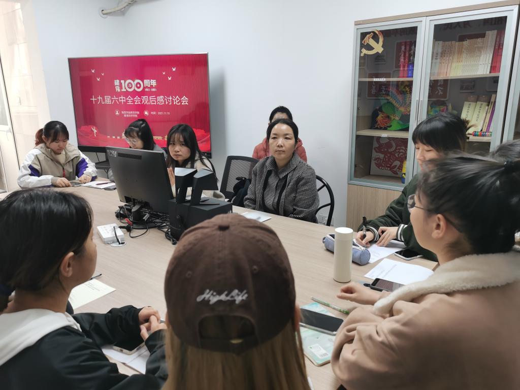 学生党支部书记彭莉老师首先带领大家一起学习了十九届六中全会会议的主要精神和内容。同学们结合自己的认识和了解,踊跃发言、积极讨论。