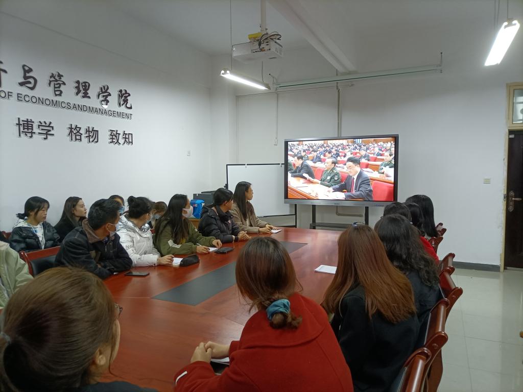 为引导广大学生党员、入党积极分子第一时间学习党的十九届六中全会精神,开展主题分享与交流,2021年11月12日,经济与管理学院学生党支部开展专题理论学习会,组织部分学生党员、入党积极分子集体观看中共中央关于党的十九届六中全会新闻发布会。专题学习由经济与管理学院学生党支部第一书记吴思瑾老师主持,学院党委副书记陈璐与学生党员、入党积极分子共同参与了本次学习。