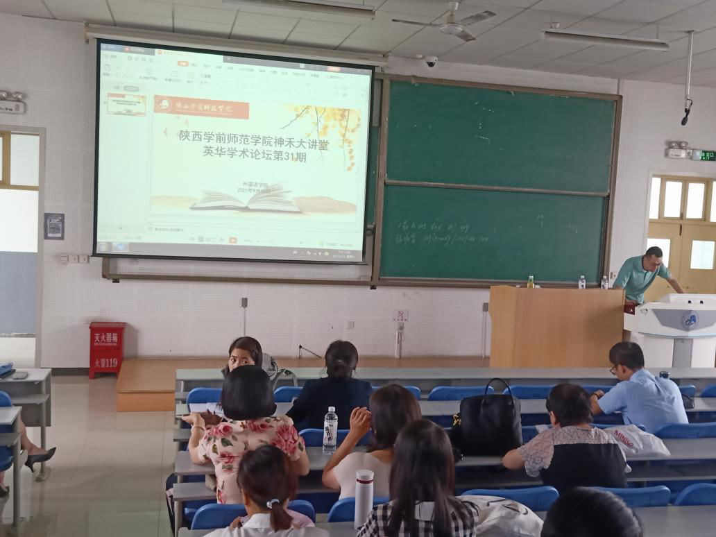 2021年9月15日下午四点,外国语学院举行了 “英华学术论坛”第31期学术讲座,西北工业大学助理教授、硕士生导师车向前博士应邀为我院全体教师做了题为《为有源头活水来:文献阅读方法简谈》的主题报告,外国语学院副院长王雨副教授主持了本次学术讲座。