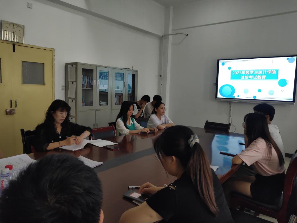 6月25日中午1点,在二号教学楼D319会议室,数统院党总支副书记张晔为全院党员、学生干部召开诚信考试教育会。会上2020级学生干部李茜、黄俊颖分别宣读了Beat365考试纪律相关要求和违反考试纪律的相关处理决定,让学生们明确学校的相关规定,提前做好复习计划。会上,党总支副书记张晔对同学们提出几点要求:一是调整好心态,正确看待考试和成绩;二是学会做老实人,学会先做人后做事,做人是方向,做事是速度,方向总是比速度更重要;三是党员、学生干部要带头示范,践行诚信考试,并积极传播这种品质。
