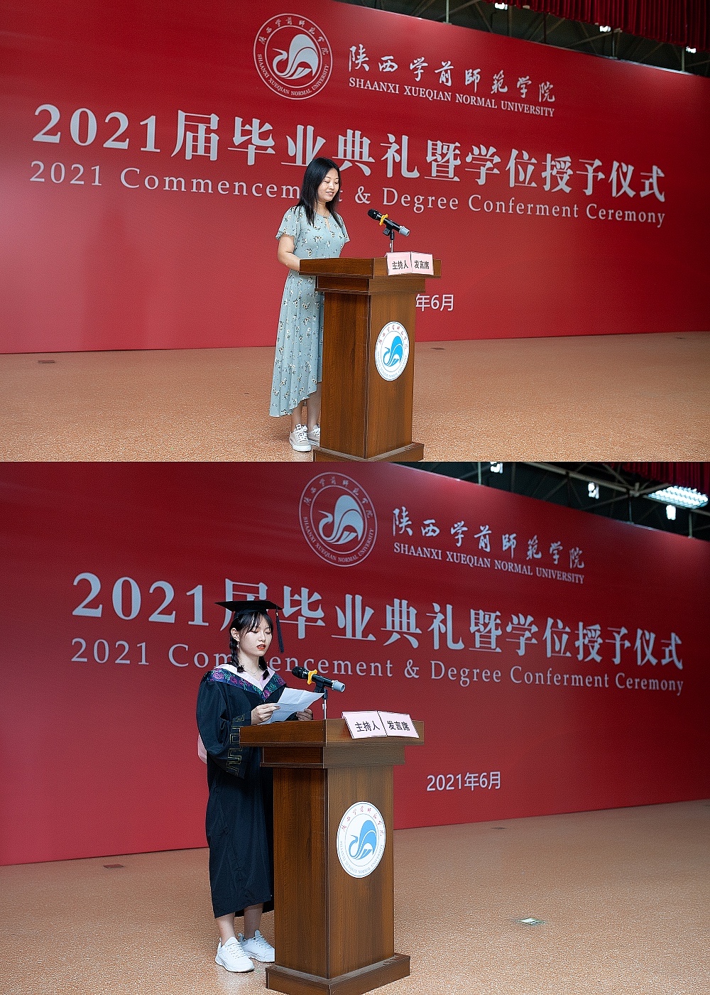6月30日下午,外国语学院在学生活动中心举办2021届毕业生毕业典礼暨学士学位授予仪式。仪式由由党总支副书记(主持工作)高海燕同志主持,出席毕业典礼的有院长张慧军教授、副院长张莉娟副教授、副院长王雨副教授、党总支副书记侯文彬、各系部主任、部分教师代表及全体毕业生。