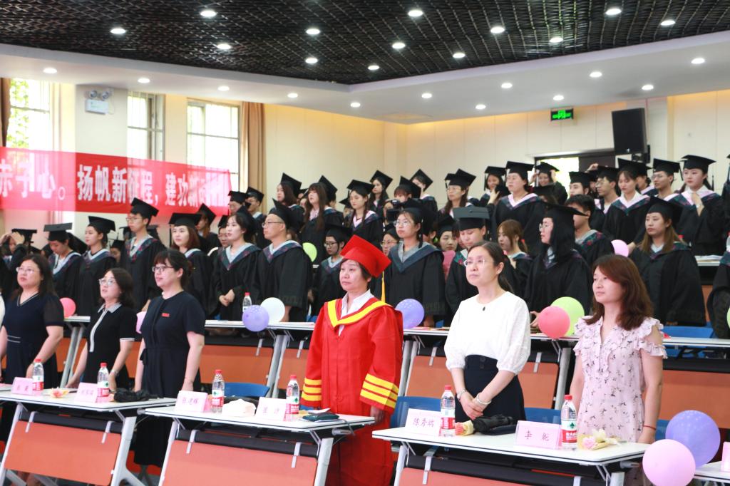 此次典礼暨授予仪式在雄壮的国歌声中拉开序幕。首先,学院党总支书记张建辉宣读了《关于准予经济与管理学院2021届学生毕业的决定》以及《关于授予经济与管理学院2021届本科毕业生学士学位的决定》。随后,学院副院长刘家瑛、陈秀端,党总支副书记陈璐为2021届本科毕业生颁发学士学位证书,学院院长崔洁为每位毕业生扶正流苏,并逐一为学生送上毕业寄语与祝福。学院幼儿园管理系党支部书记靳慧芳老师代表学院全体教师为毕业生赠言,对圆满完成学业,即将开启人生新篇章的全体毕业生们表示了最诚挚的祝福,并希冀大家能够以头顶的星空为指引,朝着自己的梦想大步迈进;能够学会用思考的头脑观察社会,用思考的力量创造未来;能够做学习的主人,继续培养自主学习、终身学习的能力。2017级学前教育(幼儿园管理)本科班王培艺同学代表全体毕业生发言,她代表毕业生对辛勤付出的学院老师们表达了最衷心的感谢和最崇高的敬意,并盼望全体毕业生都能够带着从容、坚定以及对社会的一份责任,努力成为让母校与学院骄傲的时代新人。经济与管理学院院长崔洁围绕人生新征程的开启,与毕业生们共同分享了以下四句话:第一,学会做人,希望同学们能够成为承担起国家、社会、家庭责任的人;第二,学会做事,希望同学们迈好走向社会的第一步,用心从身边的点滴小事做起;第三,学会自信,希望同学们做一个自信的人,始终充满希望、乐观、欢乐、勇气与力量;第四,学会认知,希望同学们坚持终身学习的理念,不断充实和提高自己,努力应对今后的困难与挑战。在仪式的最后,我院张薇、时媛、徐晗、李妮等四位系主任为张奕奕等14位2021届校友信息联络员颁发了聘书。