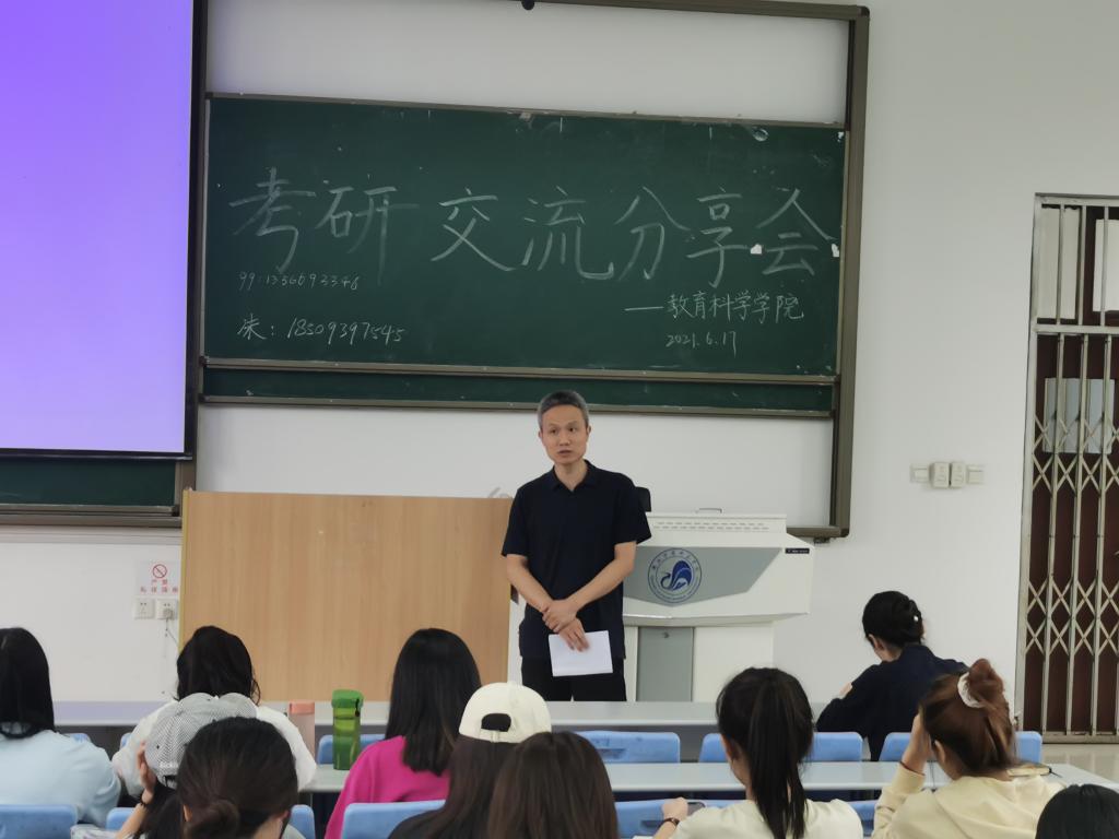 2021年6月16日中午12点教育科学学院考研分享交流会在1教A2顺利举行,参加此次考研分享会的有我院2018级意向考研学生、教育科学院党总支副书记刘然,辅导员彭莉、高薇。我院特别邀请5位优秀考研代表与同学们交流分享,并提供备考经验。