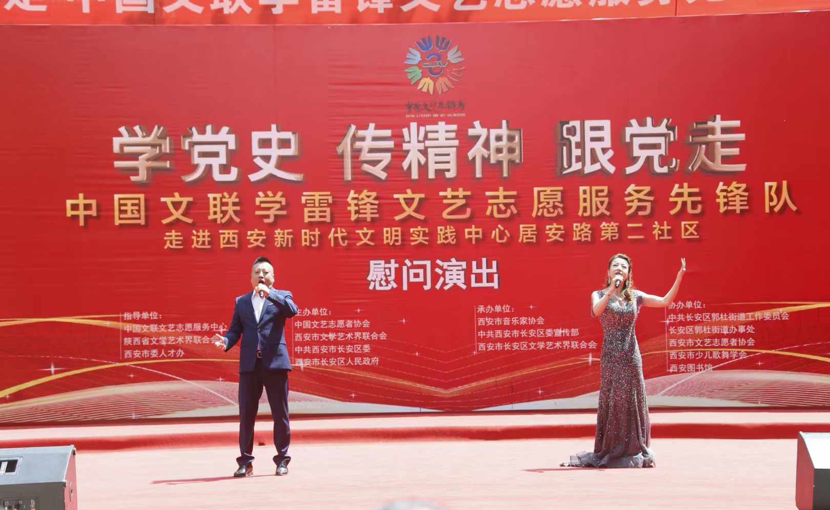 该活动由中国文联文艺志愿服务中心、陕西省文学艺术界联合会、西安市委人才办指导,中国文艺志愿者协会、西安市文联、长安区委、区政府主办,活动以“学党史 传精神 跟党走”为主题,践行“到人民中去”的文艺思想,走进西安新时代文明实践中心居安路第二社区“送文化、种文化、传精神”,生动实践文艺志愿服务。