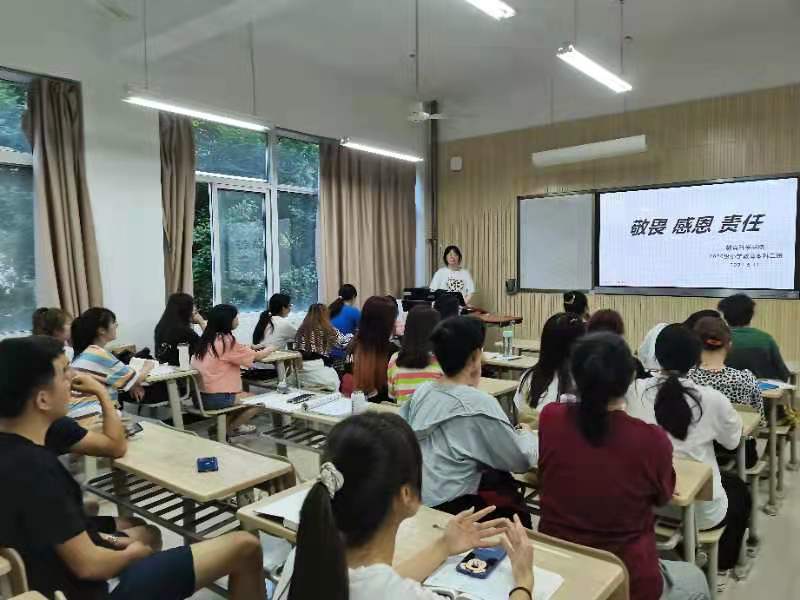 各班开展了“敬畏·感恩·责任”的主题班会。班会借助多媒体网络等手段向同学们大力宣传,引导同学们在平时日常生活中将这些意识外化于心、内化于行。通过开展主题班会,不仅使学生们认识到感恩、爱心、奉献对社会及个人都具有重要意义,也促进了同学们良好的思想道德观念的形成。