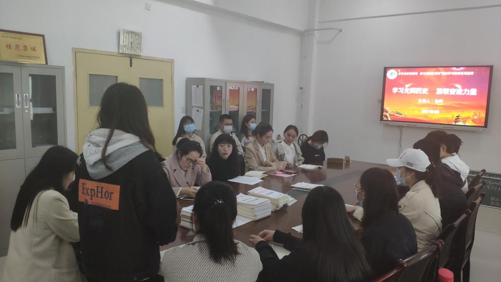 学院党总支副书记张晔对我院学生党员党史学习教育分七个专题进行了精心周密的部署和策划安排,引导我院学生在党史中汲取前进的智慧和力量,以昂扬姿态接续奋斗。随后,全体党员集体学习观看《中国共产党百年述职报告》党史学习教育视频。用党的奋斗历程和伟大成就来鼓舞斗志、指明奋斗方向。学生党员白冰洋带领大家重温入党誓词,全体党员面向党旗,高举右手,再次庄严宣誓,坚定初心。