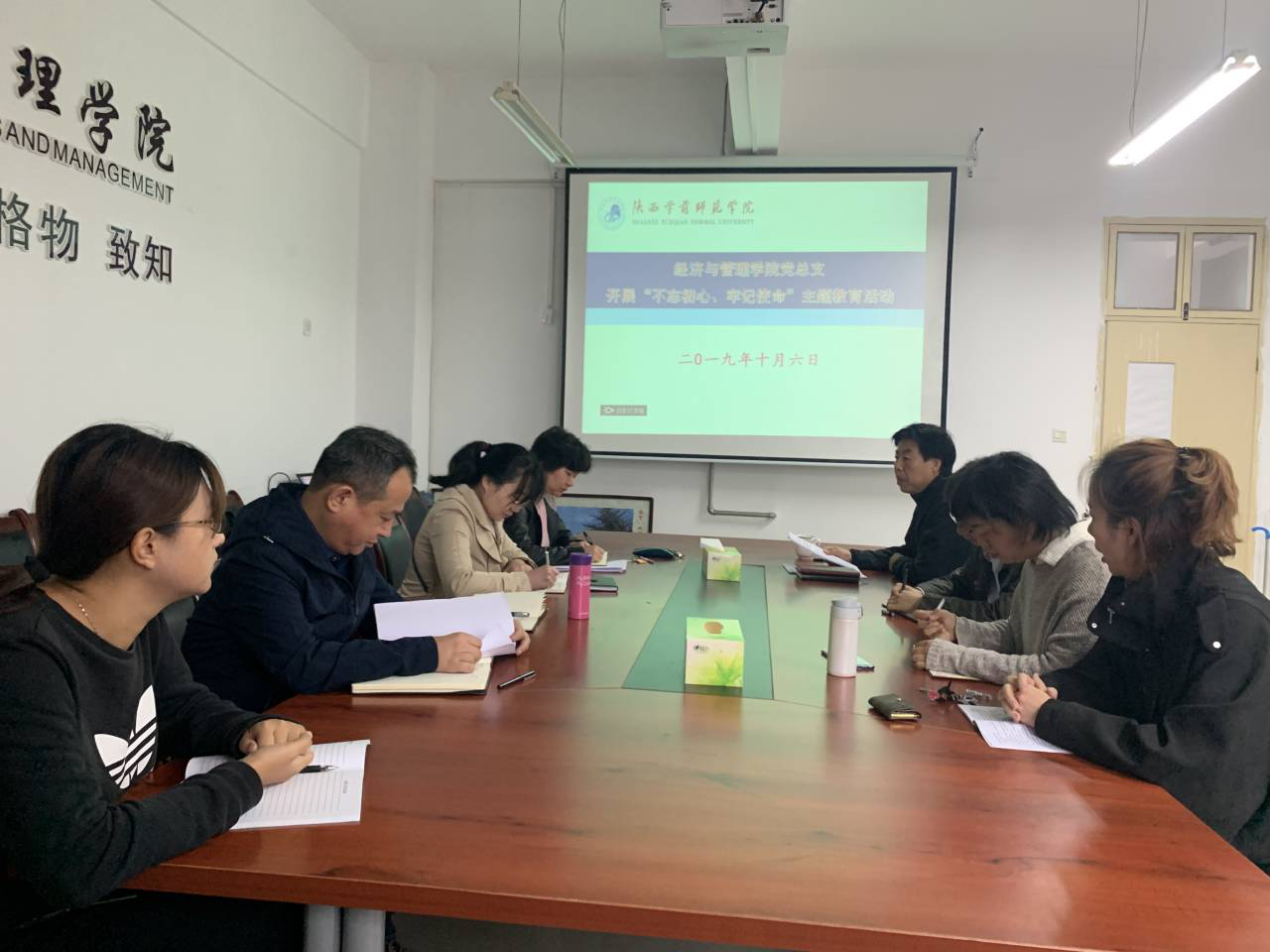 2019年10月6日上午,经济与管理学院在一号教学楼B411会议室组织召开我院“不忘初心、牢记使命”主题教育安排部署会议,会议由院党总支书记主持,总支委员及各支部书记参加。