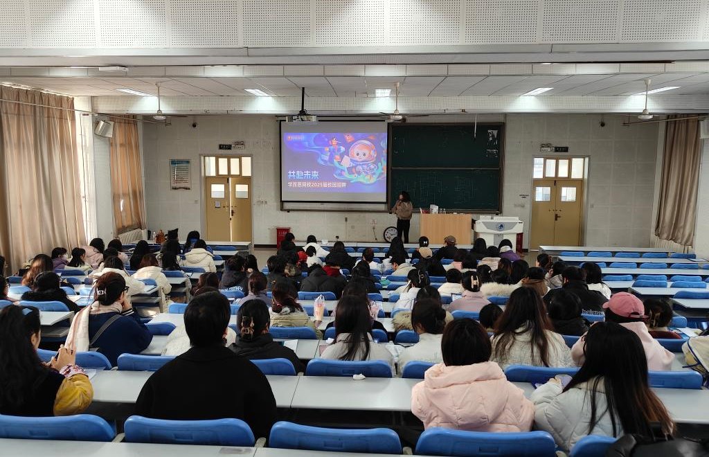为进一步做好2025届毕业生工作,为广大毕业生提供与知名企业面对面交流的平台,帮助学生更好地了解就业市场,明确职业目标,优化职业规划,2024年12月26日,信息工程学院和外国语学院联合金隽(陕西)教育科技有限公司与学而思网校共同开展了就业宣讲会,约140名2025届毕业生全程参加宣讲会。