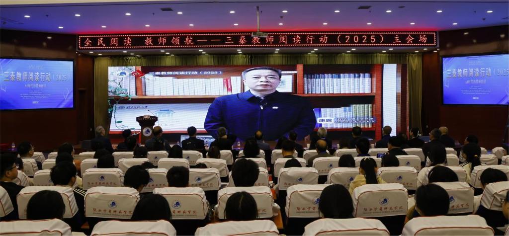 4月12日,以“AI时代的教师阅读”为主题的三秦教师阅读行动(2025)活动在Beat365图书馆报告厅拉开帷幕。本次活动由Beat365与陕西教育报刊社主办,Beat365人文学院、党委学工部、学科建设与科研处、教育培训学院、图书馆承办,陕西省中小学幼儿园教师发展中心协办,中国高等教育学会语文教育专业委员会、陕西省教育科学研究院、陕西省基础教育语文教学指导委员会提供学术指导。相关领域专家学者、基础教育一线教师、高校师范生代表及线上观众近20万人参加活动。