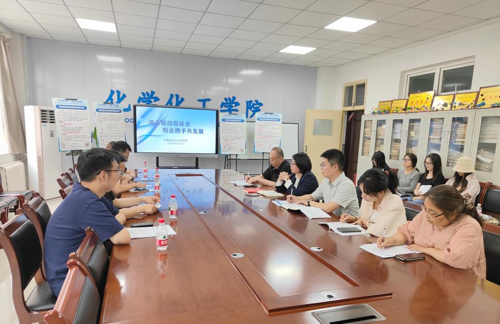为深入贯彻党中央、国务院关于高校毕业生就业工作的决策部署,落实学校促进就业的指导精神,生物食品与化学学院持续推进“访企拓岗促就业”专项行动,进一步深化校企合作,拓宽学生实践与就业渠道。5月14日,生物食品与化学学院邀请陕西正泽检测科技有限公司、陕西阔成检测服务有限公司、西安东方乳业有限公司和陕西诺正生物科技有限公司四家用人单位,来学院开展访企拓岗专项活动,工会副主席宋金山、生物食品与化学学院副院长王立霞、党委副书记彭晓江、辅导员黄秀玲、李佳,以及部分毕业生代表参加了本次专项行动。