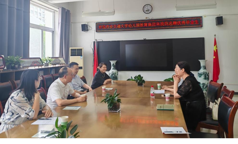 6月17日,西安交通大学幼儿园教育集团黄烜一行6人赴幼儿教育学院举办专场招聘会。校党委副书记唐宏、招生就业处主要负责人、幼儿教育学院班子成员与黄烜一行进行座谈,双方围绕当前学前教育发展趋势、高素质幼师需求以及院校协同育人机制建设等进行了深入探讨。