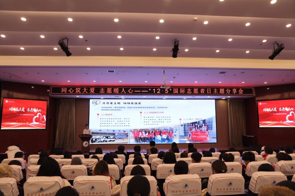 12月5日,在第40个国际志愿者日来临之际,团委在图书馆学术汇报厅举办“同心筑大爱 志愿暖人心——‘12·5’国际志愿者日主题分享会”。