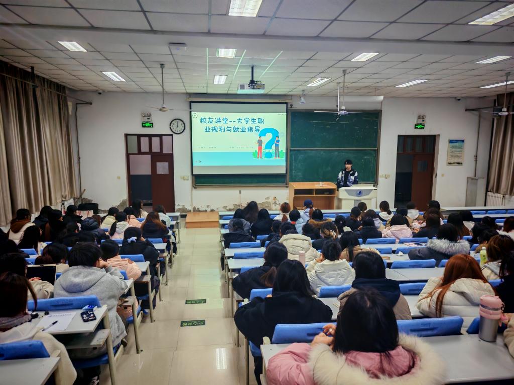 为帮助学生明确职业方向、解决就业困惑,外国语学院开展以“职业规划与就业指导”为主题的校友讲堂。本次围绕“职业规划与就业选择”展开,主讲主讲人为2023届优秀毕业生雷程坤(现任长安二中英语教师)。外国语学院大二学生、2026届毕业生代表、毕业班辅导员到场聆听。
