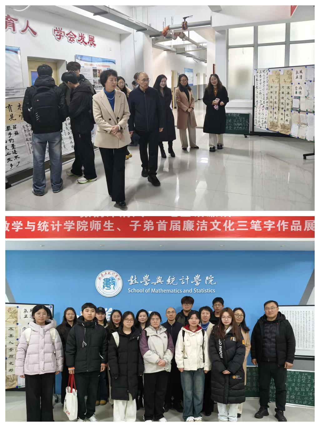 近日,数学与统计学院师生、子弟首届廉洁文化三笔字作品展圆满举办。校党委副书记权秋虎、党委副书记、纪委书记赵琼、纪检监察机构主要负责人、师生代表出席活动,现场墨香氤氲、廉韵悠长。