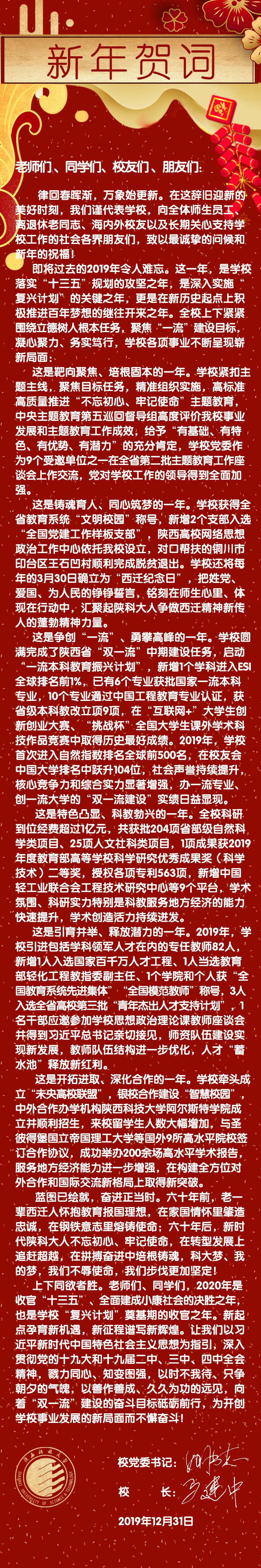 律回春晖渐,万象始更新。在这辞旧迎新的美好时刻,我们谨代表学校,向全体师生员工、离退休老同志、海内外校友以及长期关心支持学校工作的社会各界朋友们,致以最诚挚的问候和新年的祝福!