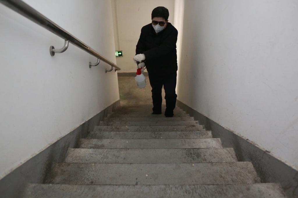伴随着疫情形势不断严峻,防疫工作的要求不断提高,学校沁园小区的消毒作业面积也在不断扩大,面临着人手不够的问题,了解到这个问题,后勤集团全体党员主动请缨,承担了沁园小区23栋楼宇公共区域的的消毒任务。他们分片包干,每日两次对各楼层入户花园、安全通道等公共区域进行消毒。后勤党总支一支部书记李小楠每次用量“特别费”,同样的面积,别的党员用两桶,他用四桶。同志们疑惑不解,一到实地观摩学习,才发现是他干得特别细致,安全通道的每一层楼梯、入户花园的边边角角、防火门把手,他都要细细喷洒一遍。在李小楠包干的23号楼2个单元,他每天要从1层爬到33层四次,累计2304级台阶,每日消毒面积6600多平方米。几天下来,腿已经很疼痛了,他还风趣地说,“就当是健身了!”