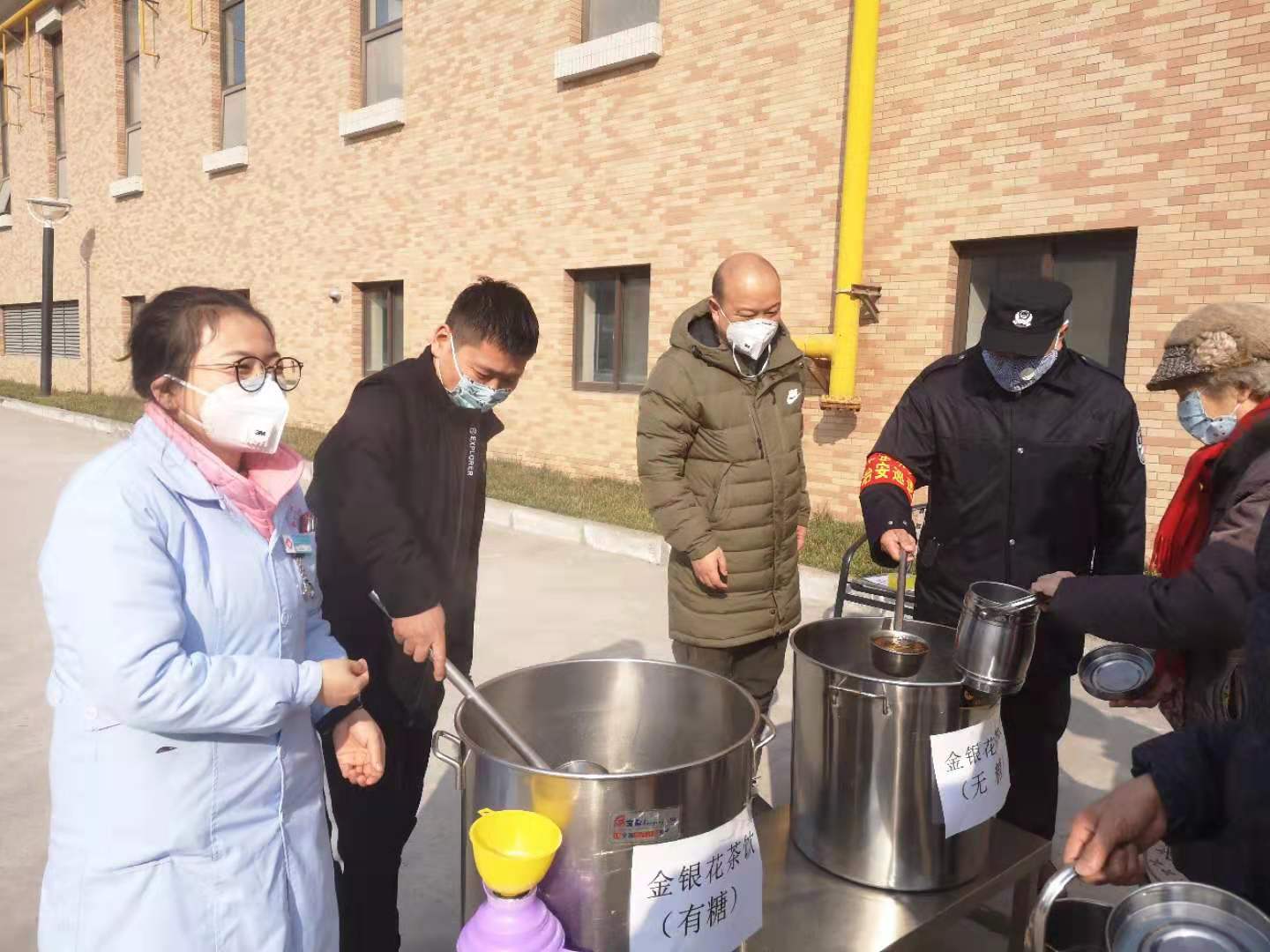 大年初二,后勤战线上的疫情防控工作就全面铺开,后勤党总支委员、校医院负责人刘强多方奔走,采购口罩、消毒水等医疗卫生用品,通过不懈努力,采购到600余包口罩、500公斤过氧乙酸消毒水,有力保障了校园消毒使用。大年初三,后勤党总支三支部书记、校医院院长樊虎杰从省疾控中心获得可以有效预防病毒感染的金银花茶饮中药饮片配方,立即联络饮食服务中心党支部书记梁本立一起着手采购饮片,张征、张海东等几位师傅着手熬制,为了照顾各类教职工人群的需求,他们还细心地准备了有糖、无糖两种口味,通过一整天的准备工作,大年初四一大早,他们就将熬好的金银花茶饮在沁园小区的三个分发点派送给教职工群众,热气腾腾的茶饮受到大家的欢迎和好评,一边熬制,一遍派发,餐厅后厨的4口大锅不断沸腾着,两天时间连续熬制了12锅金银花茶饮,温暖了全体教职工的心。