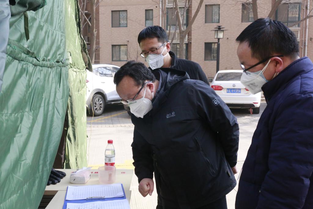 王道安对校医院的工作人员道一声“大家辛苦了!”,并提出两点要求。一是要继续加大消毒杀菌工作力度,加大小区道路、单元外围、垃圾归类区域的消杀工作,做到“零死角”;二是要加强自身防护,配全防护服、口罩、护目镜等防护用品。