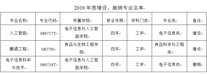 近日,教育部公布了《2019年度普通高等学校本科专业备案和审批结果的通知》(教高函〔2020〕2号),德赢官网人工智能(080717T)、酿酒工程(082705)2个本科专业获得教育部批准设置,可从2020年开始招生。申报撤销的电子信息科学与技术(080714T)本科专业,从2020年停招。