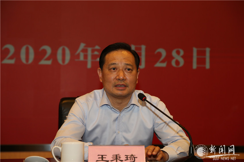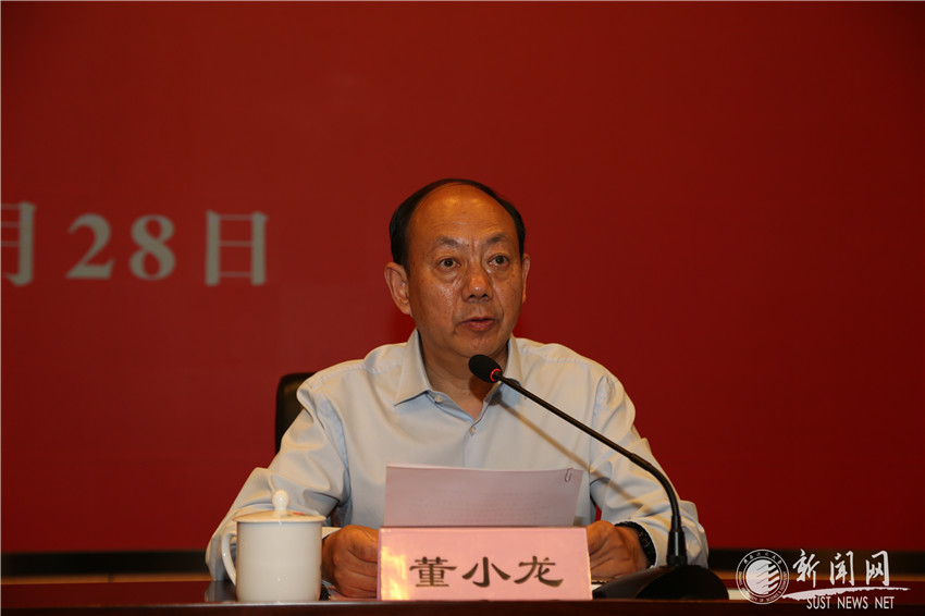 董小龙在讲话中要求,一要深入学习习近平总书记关于教育的重要论述,特别是来陕考察的重要讲话精神,以立德树人为根本任务,坚持用“延安精神”滋养初心,用“西迁精神”铸魂育人,推动全面从严治党向纵深发展,持续推进学校综合改革,努力实现陕科大追赶超越的新目标;二要抓住新时代西部大开发、共建“一带一路”等国家重大战略需求和区域经济社会发展新需要,充分发挥陕科大优势特色学科,不断提升学校核心竞争力,更好地服务于国家和陕西经济社会发展,在为陕西追赶超越做出新贡献中,加快“双一流”建设;三要严格按照教育部开学复课指南要求,扎实做好校园疫情防控,特别是要做好常态化疫情防控条件下的线上教学和毕业生就业工作,全力保障学校大局稳定。