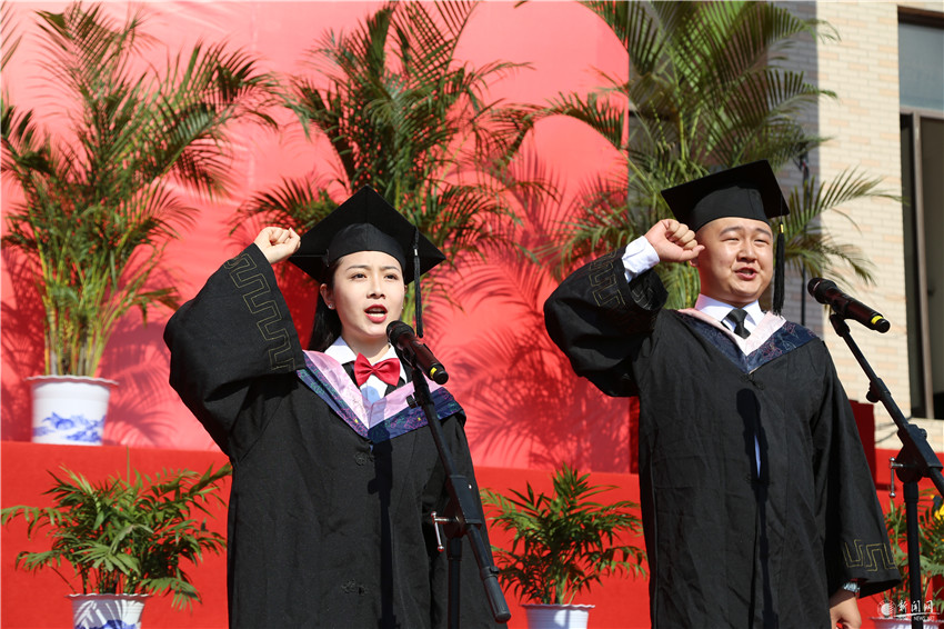 又悉,毕业典礼之后,学校在文体馆举行了德赢官网Vwin2020届硕士研究生学位授予仪式。李志健、王学川、王海燕为603名硕士毕业生一一拨穗、授证并合影留念。这是德赢官网首个研究生学位专属的授予仪式,体现了学校近年来高度重视、研究生教育飞速发展,研究生为科大复兴腾飞持续贡献力量的作用日益凸显。