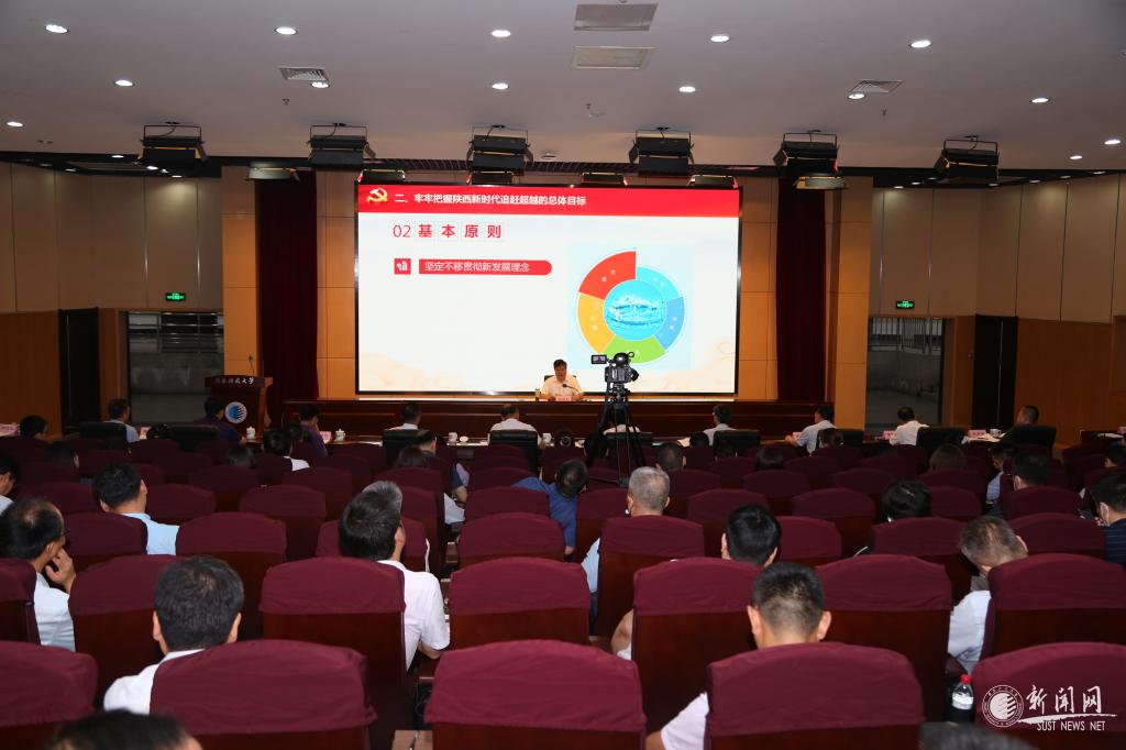 王建利结合陕西教育发展实际,从“充分认识习近平总书记来陕考察重要讲话的重大意义,深刻领会精神实质”“牢牢把握陕西新时代追赶超越的总体目标”“全面贯彻五项要求,推动陕西新时代各项工作取得新气象新作为”“只争朝夕真抓实干,以勇立潮头的气魄奋力谱写陕西高等教育新时代追赶超越新篇章”四个方面,对省委十三届七次全会精神进行全面系统的阐述。