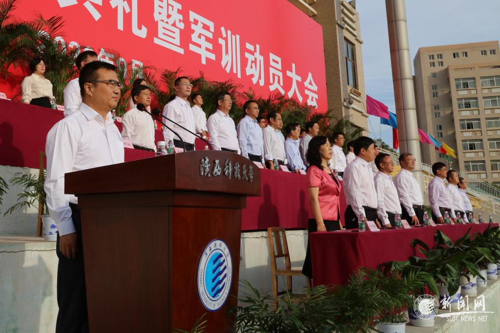 金风送爽,碧空如洗,九月的科大涌动着青春的热潮。9月16日,德赢官网2020级新生开学典礼暨军训动员大会在标准田径场举行。校长李志健,校党委副书记、纪委书记、监察专员王为民,副校长王学川、王海燕、李学军,总会计师徐晓峰,校长助理郑恩让,各院系及有关职能部门负责人、教师代表和学生代表齐聚一堂,见证6000余名学子成为“新陕科大人”的光荣一刻。大会由校党委副书记杨欲晓主持。
