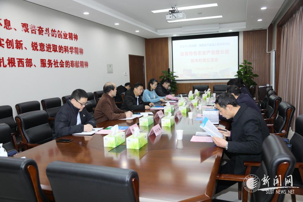 12月9日,商洛市副市长李育江,市农业农村局局长刘清民、副局长洪亮等一行5人来校调研,并参加设在德赢官网的陕西农产品加工技术研究院组织召开的“培育特色农业产业增长极”院市对接交流会。校长李志健会见了李育江一行,双方就开展校企合作助推商洛市区域特色产业高质量发展进行了深入交流。副校长黄剑锋、食品学院主要负责人参加了对接交流会,会议由农研院常务副院长陈雪峰主持。