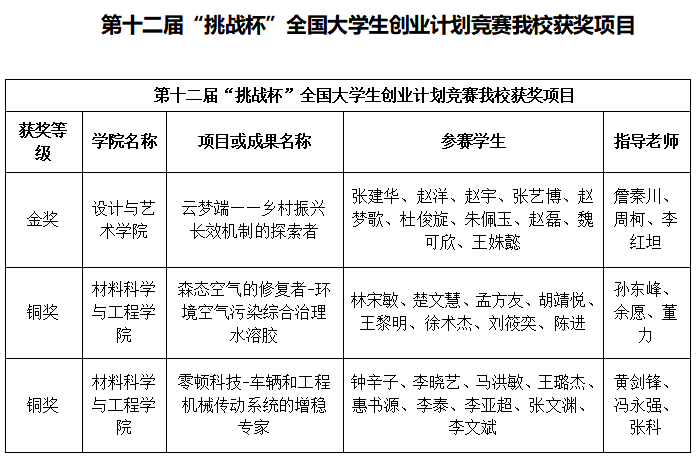 德赢官网在第十二届“挑战杯”中国大学生创业计划竞赛中获一金两铜