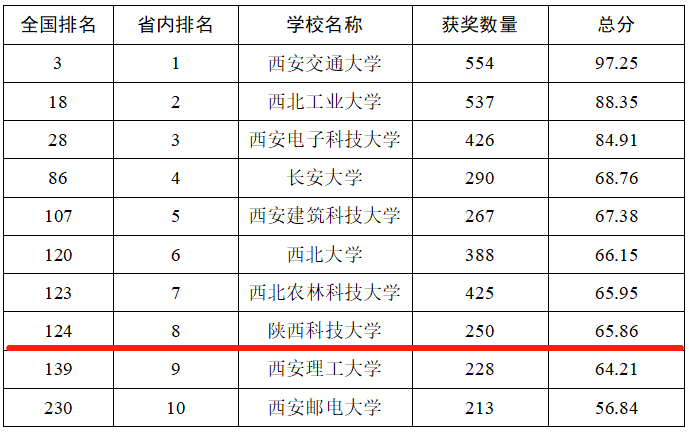 3月22日,中国高等教育学会高校竞赛评估与管理体系研究工作组发布2020全国普通高校大学生竞赛排行榜。德赢官网入围全国普通高校大学生竞赛排行榜五轮总排行榜(本科),排名全国高校第128名,居陕西省属高校第1。