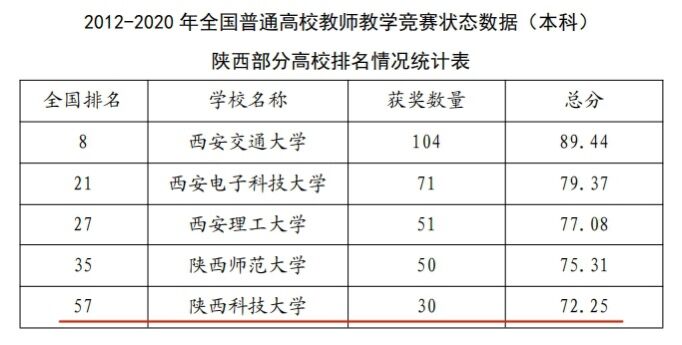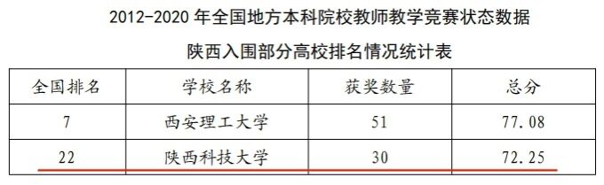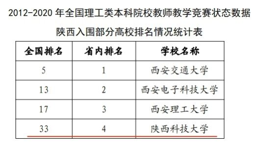 在《2012-2020年全国理工类本科院校教师教学竞赛状态数据》中,德赢官网排名全国第33位,位居陕西省高校第4位。