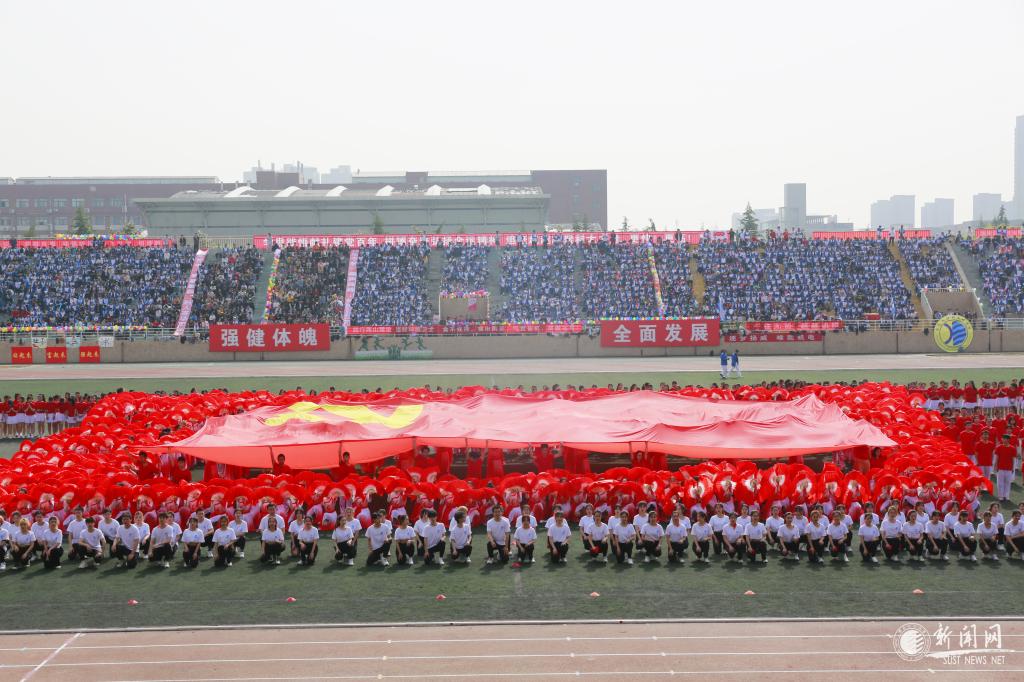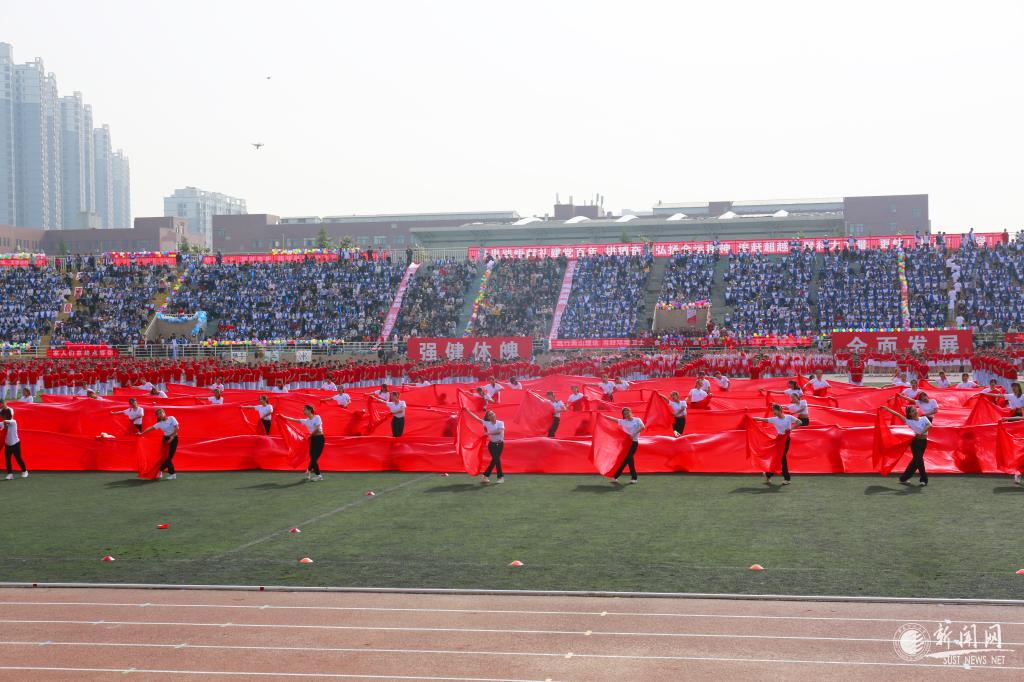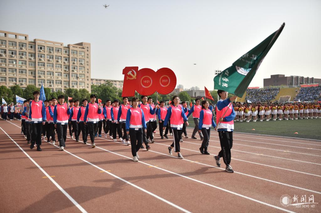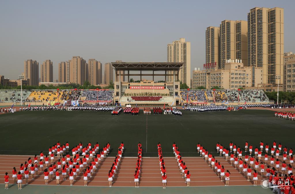大学生表演的大型团体操《喜迎十四运》《青春·激情·绽放》《扬帆起航》《党旗更鲜艳》气势磅礴、异彩纷呈,1400余名大学生以无限的热情、灿烂的笑容、优美的舞姿、昂扬的斗志、拼搏的姿态,诠释着青春韶华的精彩,为学校2021年田径运动会起舞喝彩。