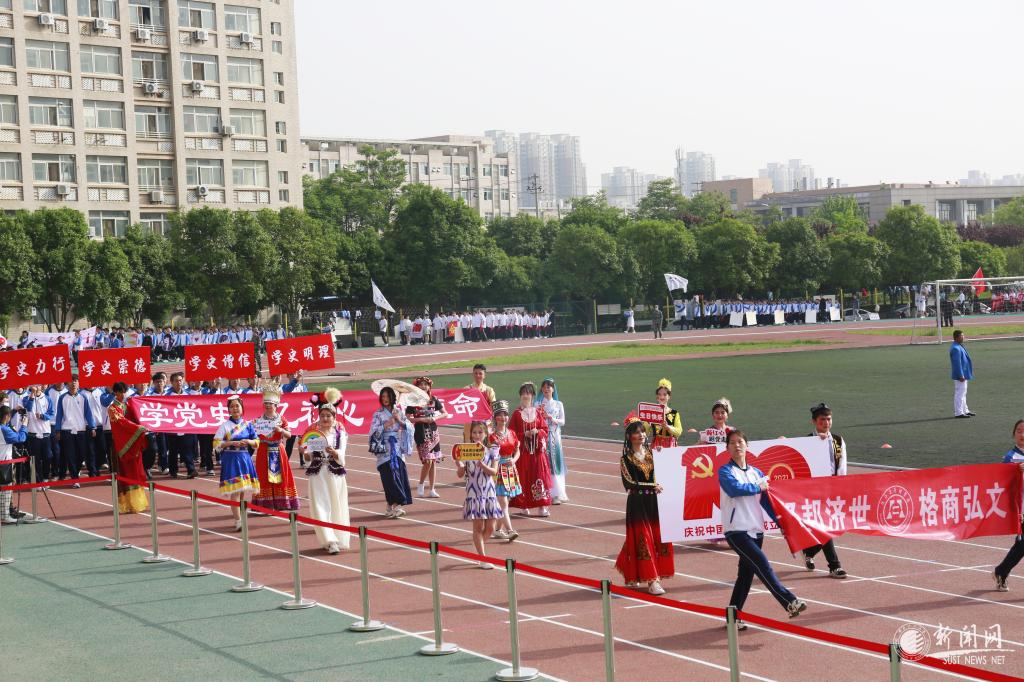 激昂的运动员进行曲中,三旗仪仗队、裁判员、运动员、青年志愿者等代表队方阵迈着矫健步伐依次通过主席台前,他们的脸上洋溢着青春和热情。充分展示了陕科大师生以习近平新时代中国特色社会主义思想为指导,贯彻党的教育方针,以立德树人为根本任务、学科建设为龙头、师资队伍建设为重点、深化改革为动力、党的建设为保证,贯彻“创新、开放、共享,学科、结构、质量”的新发展理念,构建“六个聚焦”的新发展格局,深入实施奠基、复兴、腾飞“三步走”发展战略,积极探索新机制、新平台、新路径,着力构建全方位、多层次、立体化开放办学大格局,推动学校内涵式高质量发展。